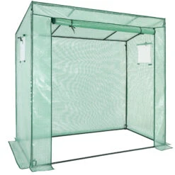 Gewächshaus 7,6 m³ mit 2 Dachfenstern, Regenrinne und Stahlfundament