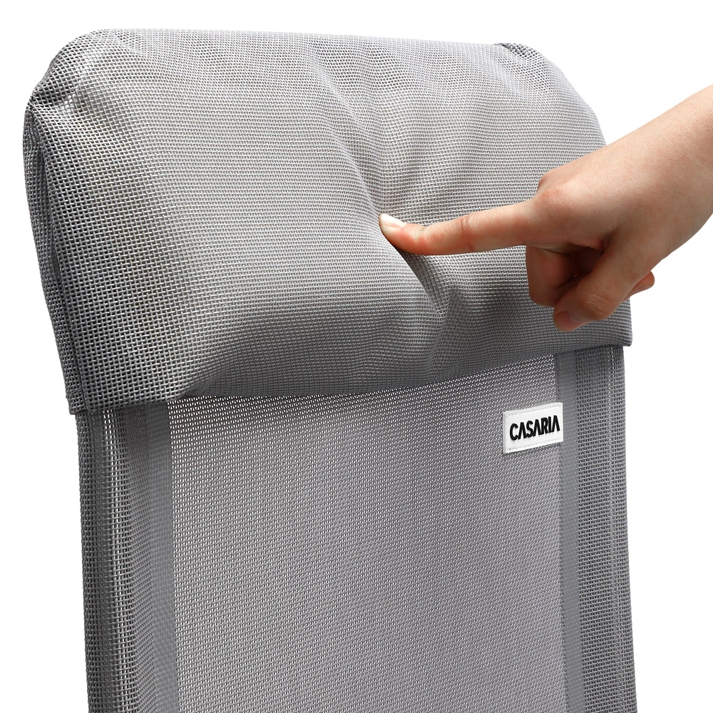 Die Rückenlehne der Hochlehner Garten-Stühle sind 7-fach verstellbar und bestehen aus einem hochwertigen Aluminiumrahmen mit verstärken Standfüße. Der Kopfbereich ist mit einem bequemen Polster ausgestattet.
