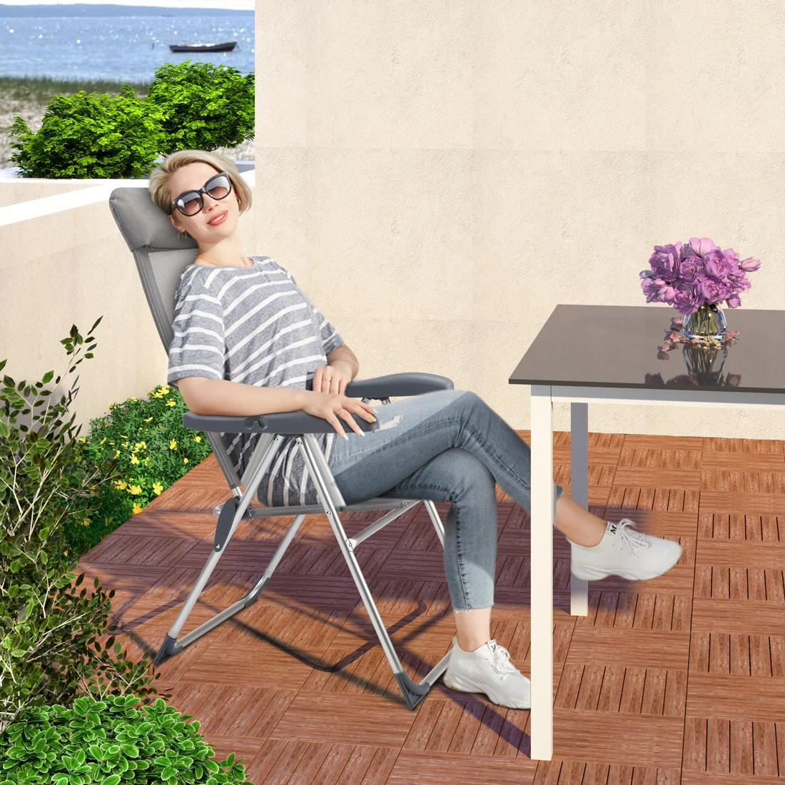 Praktisches 4er-Set Gartenstühle Hochlehner aus Aluminium mit 7-fach verstellbarer Lehne – Ideal für unterwegs!