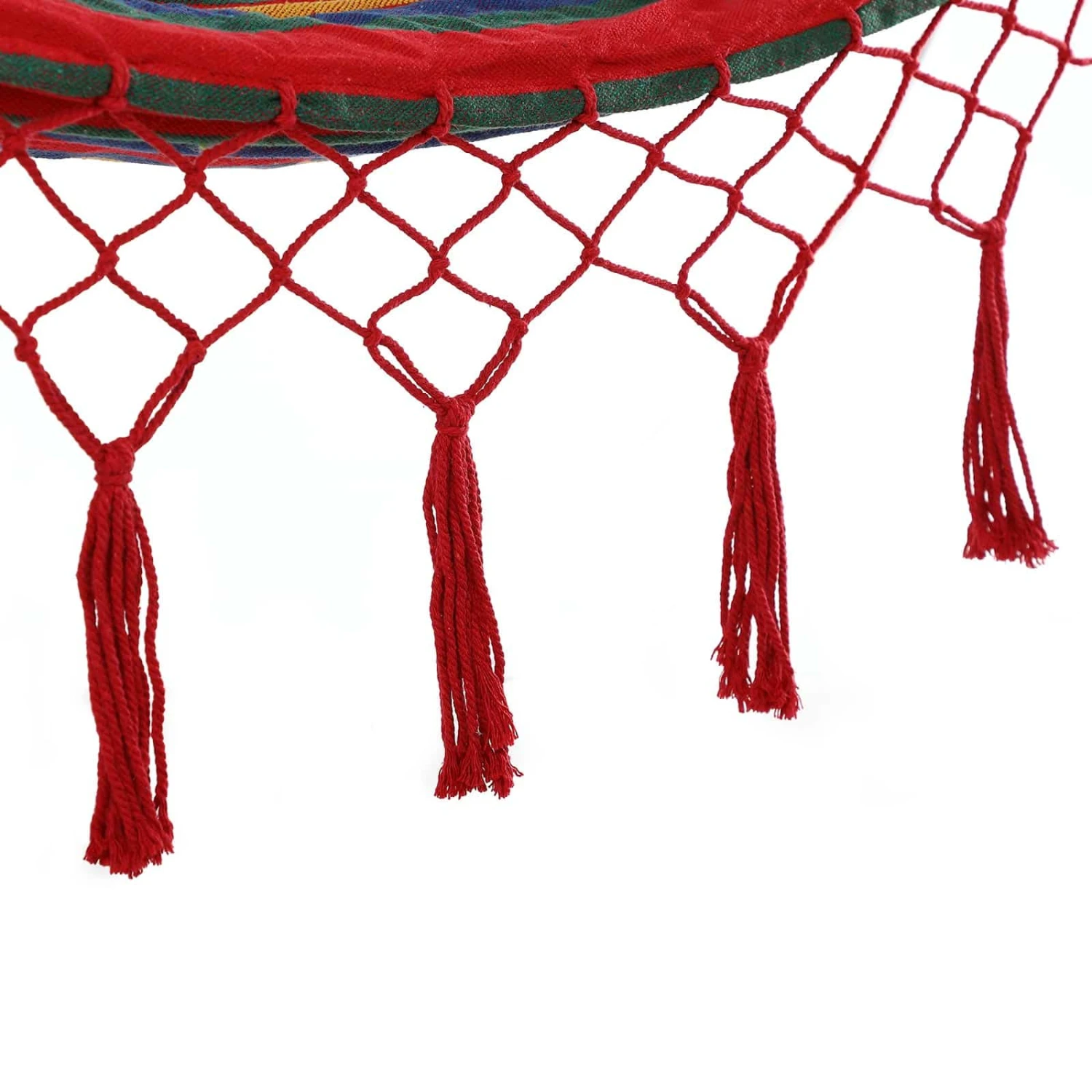 Das Sitzpolster sogt für mehr Bequemlichkeit, es besteht aus atmungsaktivem 320g/m² Baumwoll-Polyester-Gemisch, der anschmiegsame Stoff passt sich der Form Ihres Körpers an, ist hautfreundlich, wetterfest und wasserabweisend. Der Hängesessel wird durch reißfeste Schnüre mit der stabilen Holzquerstange und dem robusten Stahlring verbunden.