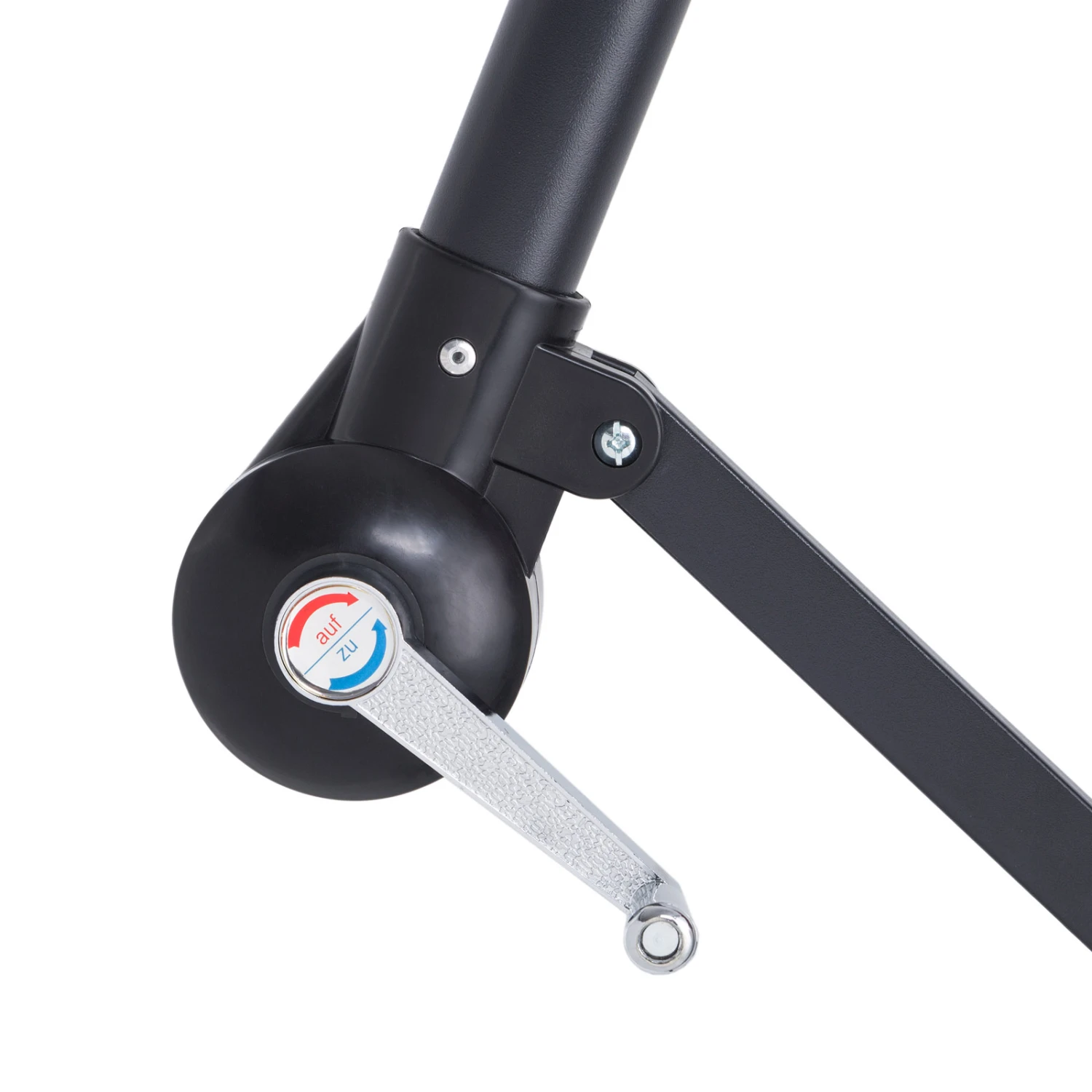 Der Sonnenschirm kann ganz einfach und mit wenigen Handgriffen zusammengeklappt und platzsparend zerlegt werden. Durch die integrierte Kurbel ist der große Sonnenschirm im Handumdrehen auf- bzw. zu gekurbelt.