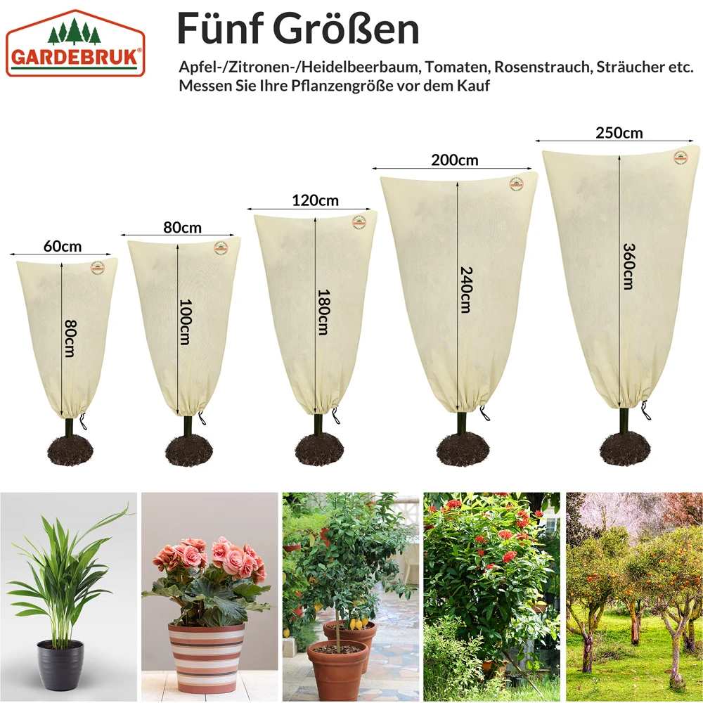 - praktischer Kordelzug an der Unterseite, damit der Sack nicht weggeweht und die Pflanzen von unten geschützt sind