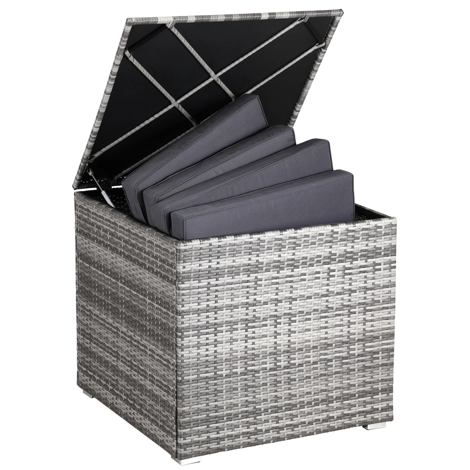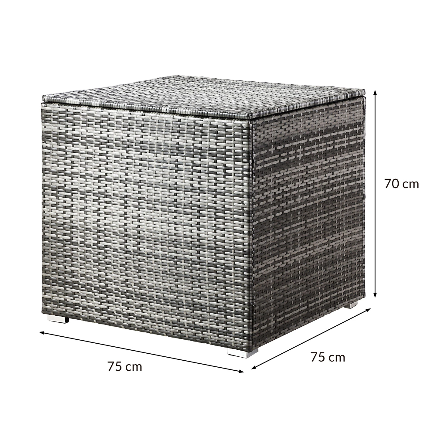 Die robuste Auflagenboxen bietet mit 318 L Fassungsvermögen viel Stauraum für Sitzauflagen, Kissen und andere Gartenaccessoires. Das wetterfeste Polyrattan und das galvanisierte Stahlgestell sind bestens für den Outdoor-Einsatz geeignet. Die Oberfläche der Gartenbox ist schmutzabweisend und einfach zu reinigen.