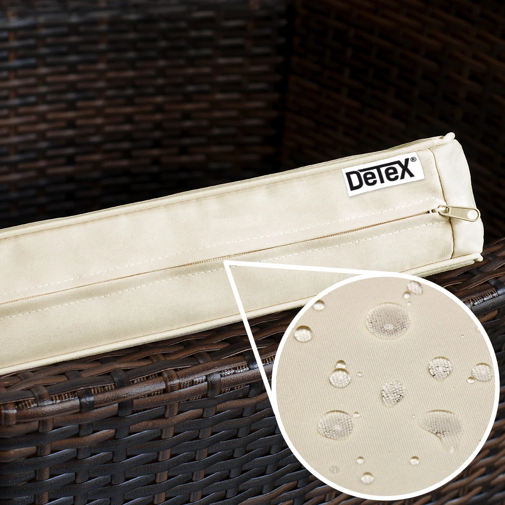 Unser wetterfestes, handgewobenes Polyrattan ist UV-lichtbeständig, schmutzabweisend und einfach zu reinigen.