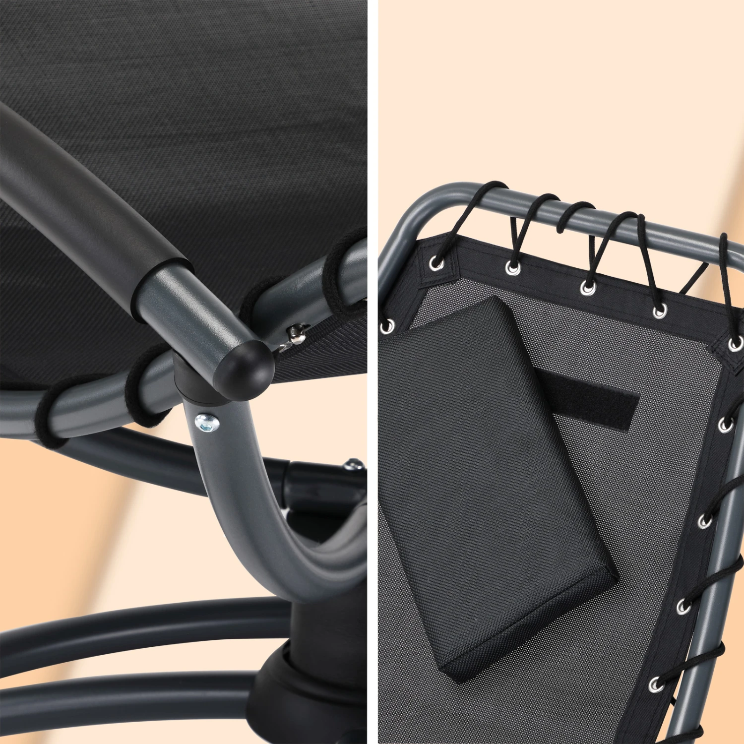Die spezielle Konstruktion ermöglicht dank perfekt balancierter Spiralfeder sanfte und entspannende Schwingbewegungen in alle Richtungen. Das besonders bequeme Kissen an der Kopfstütze ist abnehmbar. Kissen und Liege sind luftdurchlässig und schnell trocknend und Sie erleben so auch im Sommer eine frische und angenehme Zeit auf der Relaxliege.