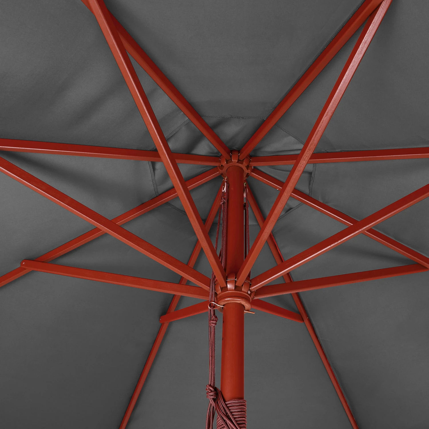 Ein besonderer Hingucker ist der Mast aus echtem Holz, mit dem Sie Akzente in Ihrem Garten setzen können. Der 48 mm starke Mast und die Windöffnung sorgen für einen stabilen Stand. Durch die Windöffnung kann von unten aufkommender Wind nach oben entweichen, zudem kann sich dadurch kein Hitzestau unter dem Schirm bilden.